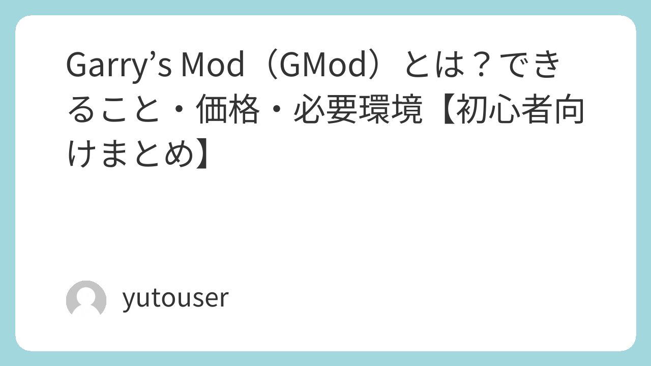 Garry’s Mod(GMod)とは?できること・価格・必要環境【初心者向けまとめ】