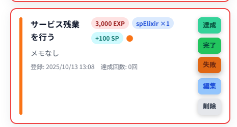 (ToDoリストで「サービス残業: +3000EXP」と設定されているスクリーンショットを掲載)